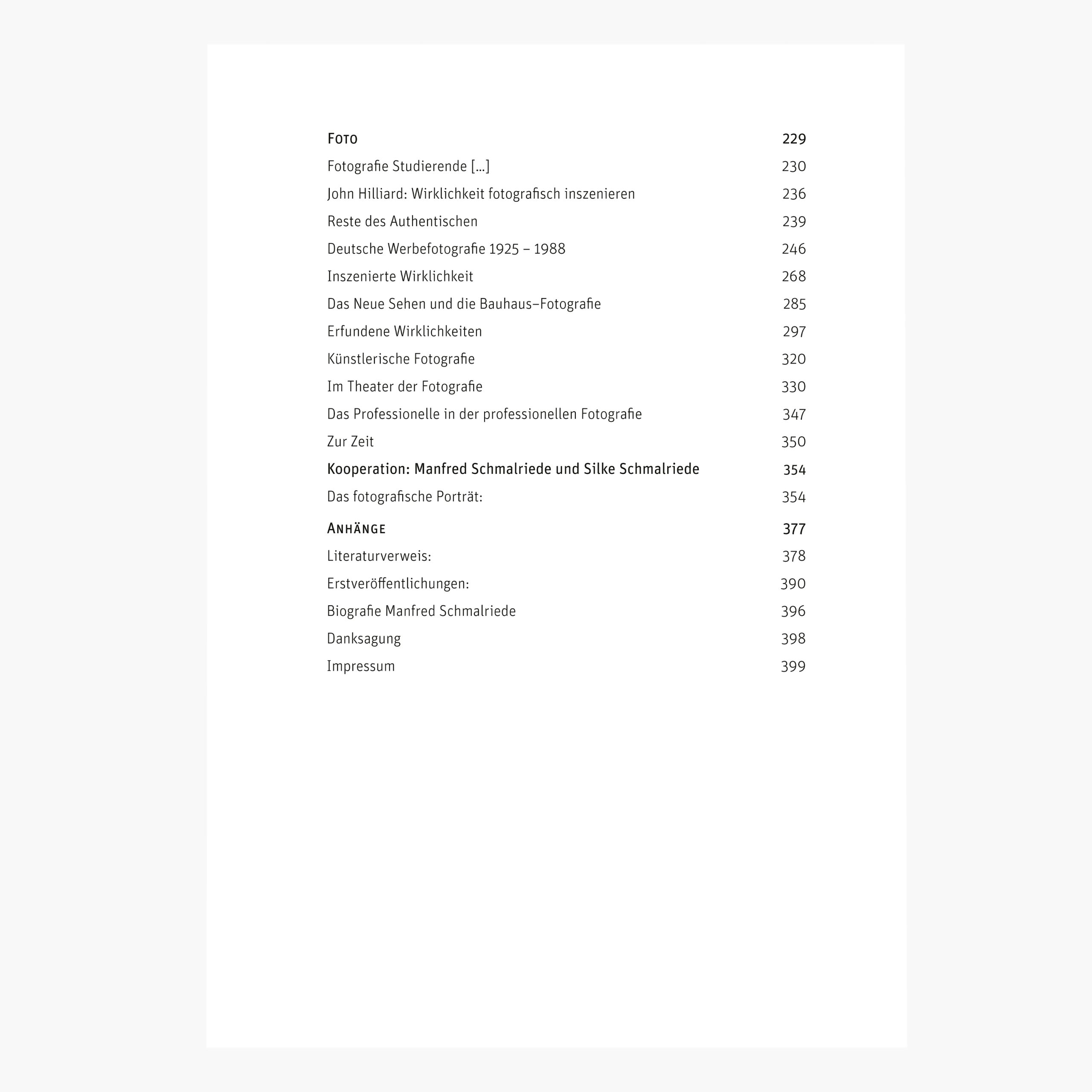 The photo theorist, professor, lecturer, school founder, and author Manfred Schmalriede (*Pforzheim 1937) passed away in the autumn of 2023. He left behind an extensive collection of writings and lectures composed in connection with his teaching activities, as well as for magazines, exhibitions, and book projects. During his lifetime, however, no book was ever published that presented his comprehensive journalistic projects in a collected form. The foundational texts assembled for this volume were still selected jointly by Manfred Schmalriede and the editors. The organization and structure of the book were determined by Silke Helmerding (Professor of Artistic Photography at Pforzheim University) and Jörn Vanhöfen (former student of Manfred Schmalriede, photographer, teacher, and co-founder—along with Manfred Schmalriede and Arno Fischer—of the Fotoschule am Schiffbauerdamm, fas).