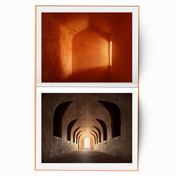 Die großformatigen eindrucksvollen Bilder von Ljubodrag Andric (*1965) lassen sich umso schwerer einordnen, je länger man sie betrachtet. Auch wenn der Künstler zu Beginn seines kreativen Prozesses eine Kamera verwendet, bewegt er sich an der Schnittstelle von Fotografie und Malerei. Zwischen 2019 und 2024 reiste Andric durch Indien und lies sich von der Atmosphäre historischer Gebäude zu Arbeiten inspirieren, die man als mit Licht gemalte geometrische Abstraktionen bezeichnen kann. Ein besonderes Merkmal seiner Arbeiten ist die an Freskomalerei erinnernde taktile Qualität, die sich auch in der Materialwahl für dieses Buch widerspiegelt. Die als „dos-a-dos“ gebundene Publikation vereinigt zwei Bücher in einem. Das klassische und gleichermaßen radikale Layout des niederländischen Buchgrafikers SYB spiegelt den visuellen Ansatz der Arbeiten von Ljubodrag Andric congenial wider. Ein wechselnder Rhythmus von ganzseitigen Abbildungen und doppelseitigen Details greift die Eindrücke und Empfindungen auf, die sorgfältige Betrachter seiner großformatigen Originale haben können.