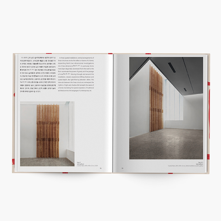 Nam Tchun-Mo (*1961) steht für eine zeitgenössische Fortsetzung der Dansaekhwa-Bewegung, einer südkoreanischen Kunstbewegung, die bereits in den 1960er Jahren radikal abstrakt, weitgehend monochrom und zunehmend dreidimensional arbeitete. Durch repetitive Handlungen in einer meditativen Malpraxis schafft er eine zeitgenössische Interpretation von „golbeop“ (骨法), einem klassischen Prinzip der ostasiatischen Malerei, das die strukturelle Vitalität und Lebenskraft des Pinselstrichs betont. Er verbindet auf organische Weise Tradition und Zeitgenossenschaft, Handwerkskunst und abstrakte Form, Körperlichkeit und Spiritualität sowie persönliche Erinnerungen und kollektive kulturelle Erfahrungen. Die zentralen formalen Elemente von Nam Tchun-Mos Praxis sind Linien, die an gefurchte Felder erinnern, und Elemente traditioneller Architektur wie Gitterfenster und Dachsparren.